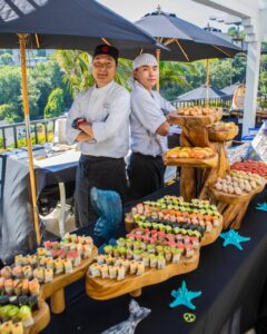 Our signature entry package showcases the craftsmanship and attention to detail that made Yooshi a standout in live sushi catering.